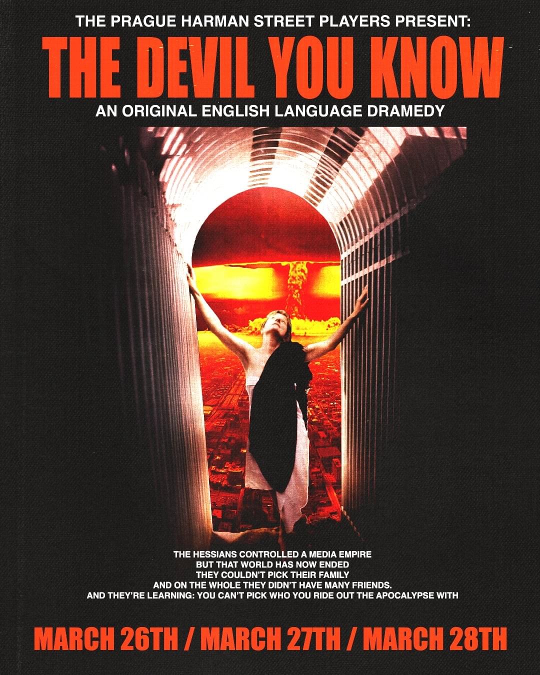 In the tradition of Edgar Allan Poe's The Masque of the Red Death, they were rich , they were powerful, and as you would have guessed, when the world ended, they had the means to survive. But one outlier threatens to ruin their plan to wait out the apocalypse in decadence! From The Prague Harman Street Players comes, The Devil You Know!